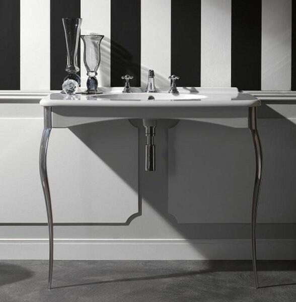 - medenceméretek: 100 x 50 cm- 1 csapfurattal (2 további furattal rendelhető)- túlfolyóval- konzol aranyszínű alumínium lábakkal- falra szerelhető lábakkal- súly: 48 kg- mosdókagyló színe: fekete- a konzol színe: fényes feketeAz ár csak a fekete mosdókagylóra vonatkozik, fekete konzollal és aranyszínű lábakkal.