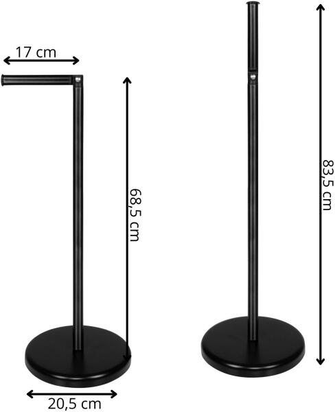 ALAPVETŐ ADATOKMárka: Springos®Szín: feketeFelület: mattAnyag: fémÖsszeszerelést igénylő termékMéretek:Magasság egyenes karral: 83,5 cmMagasság hajlított karral: 68,5 cmCsak a kar hossza: 17 cmAz alap átmérője: 20,5 cmAz alap magassága: 2,5 cmOszlop átmérője: 2 cmA kart lezáró lemez átmérője: 2,5 cmTovábbi információk:Mozgatható karStabil, nehéz alap